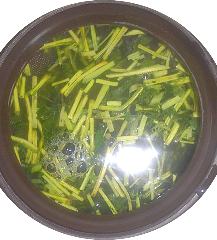 Preparation 1: In the first, I prepared the tea in the same way I might any other green tea (like a Sencha or normal Kukicha). I first boiled the water and then allowed it to cool for about 3.5-4 minutes. I used 2 tsp in about 160-170 mL of water and infused the tea for about 30-40 seconds.