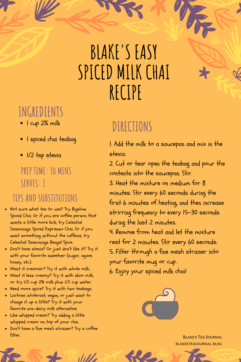 Hey there, fellow tea drinkers! I hope you’re having a great weekend. Have you ever wanted to try making a spiced milk chai at home, but you just weren’t sure where to start? Well, in today’s post I’m sharing the easy recipe that I use when I make a spiced milk chai at home; this is my take on an easy homemade version of something like a Masala Chai. All you need are three ingredients and ten minutes to make a delicious homemade spiced milk chai!