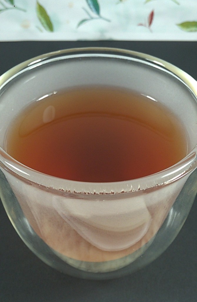 Tea liquor: After infusing, the scent coming off of the liquor still had notes of hay and some mild sweetness, but it also had a hint of apricot fruitiness and some light floral, honeysuckle, notes. The color of the liquor was a dark golden honey color.
