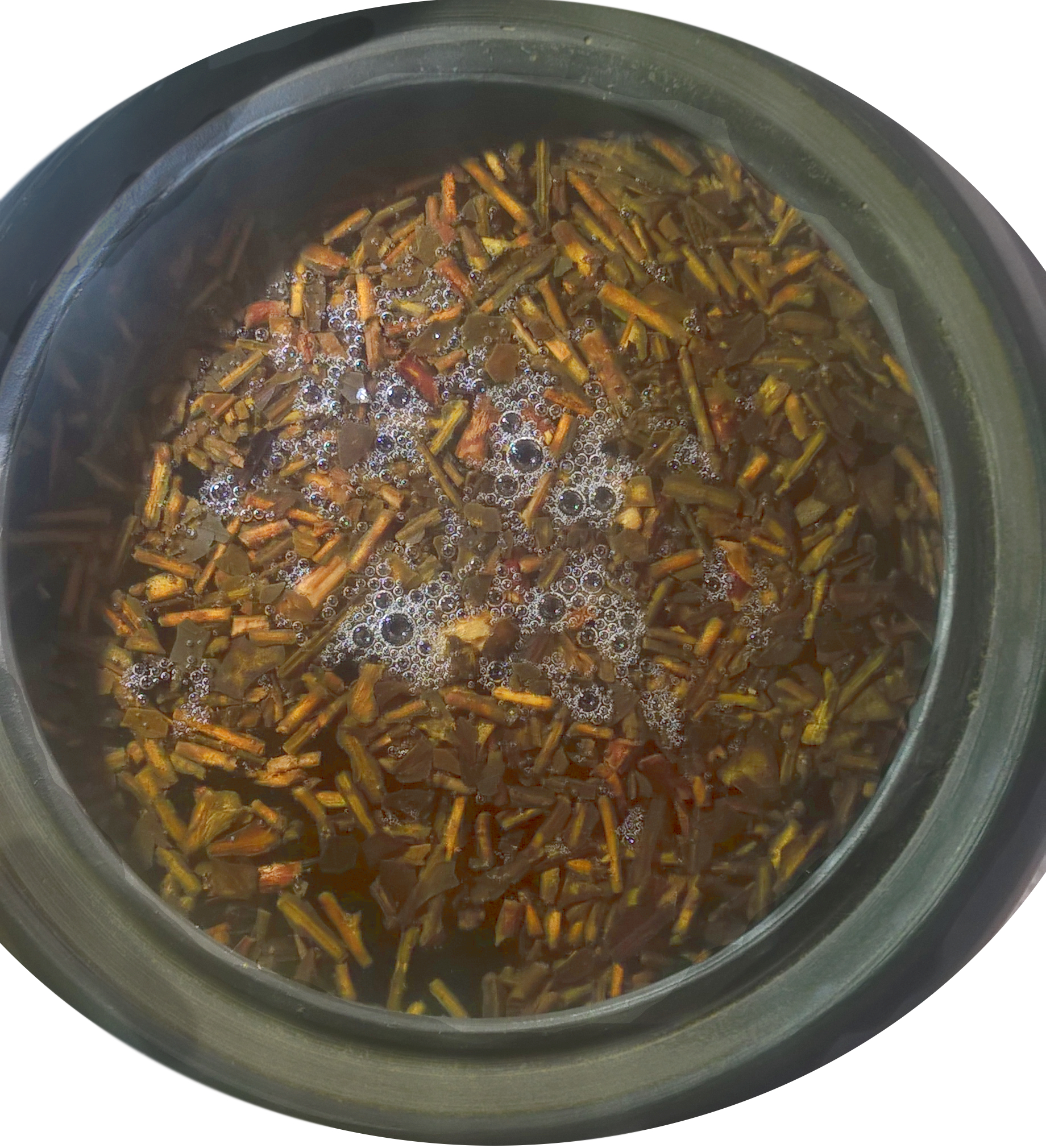 Dry tea: The scent emanating from the package was sweet and herby with some roasted notes. The scent also had a slight medicinal quality, similar in quality to a Hojicha (also a roasted green tea). The tea itself was quite woody and appeared to be mostly stems, sticks, and veins; the colors were all shades of brown, and the tea reminded me a bit of mulch.