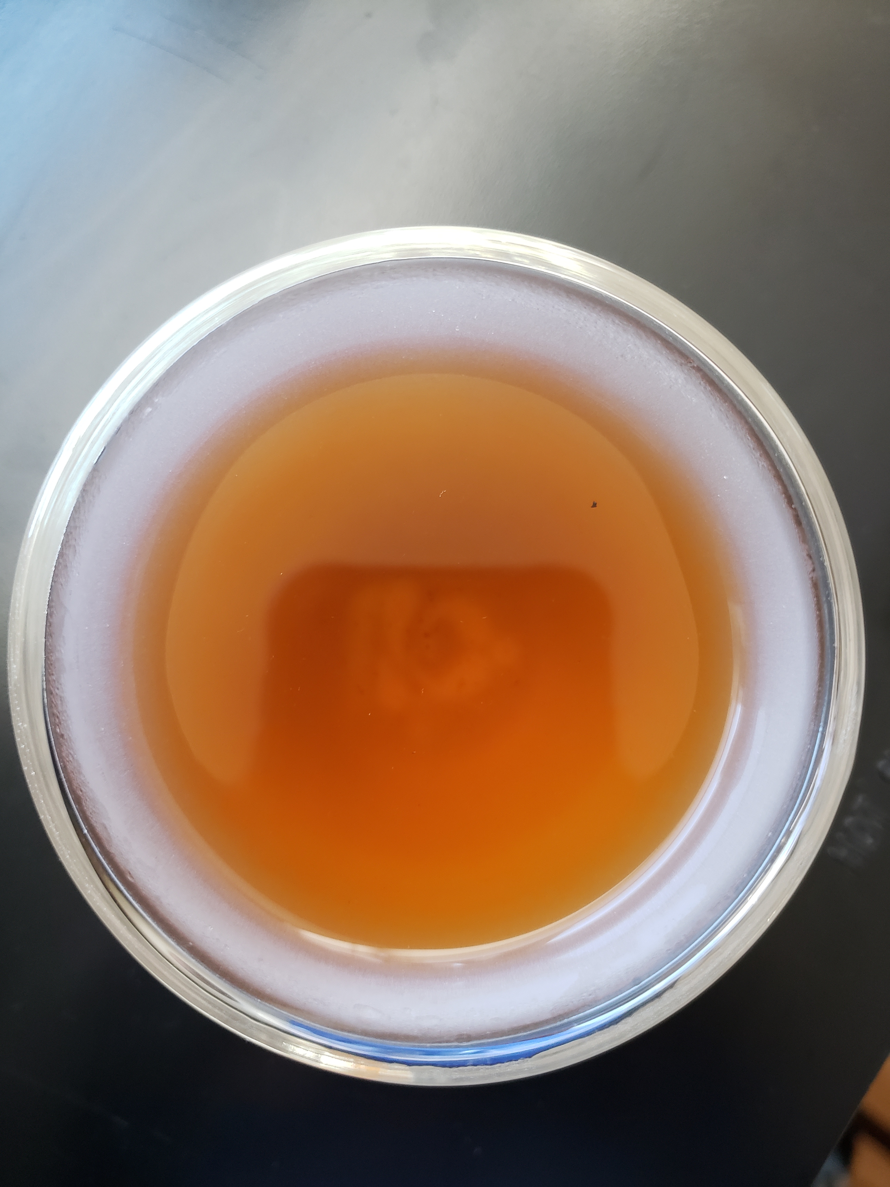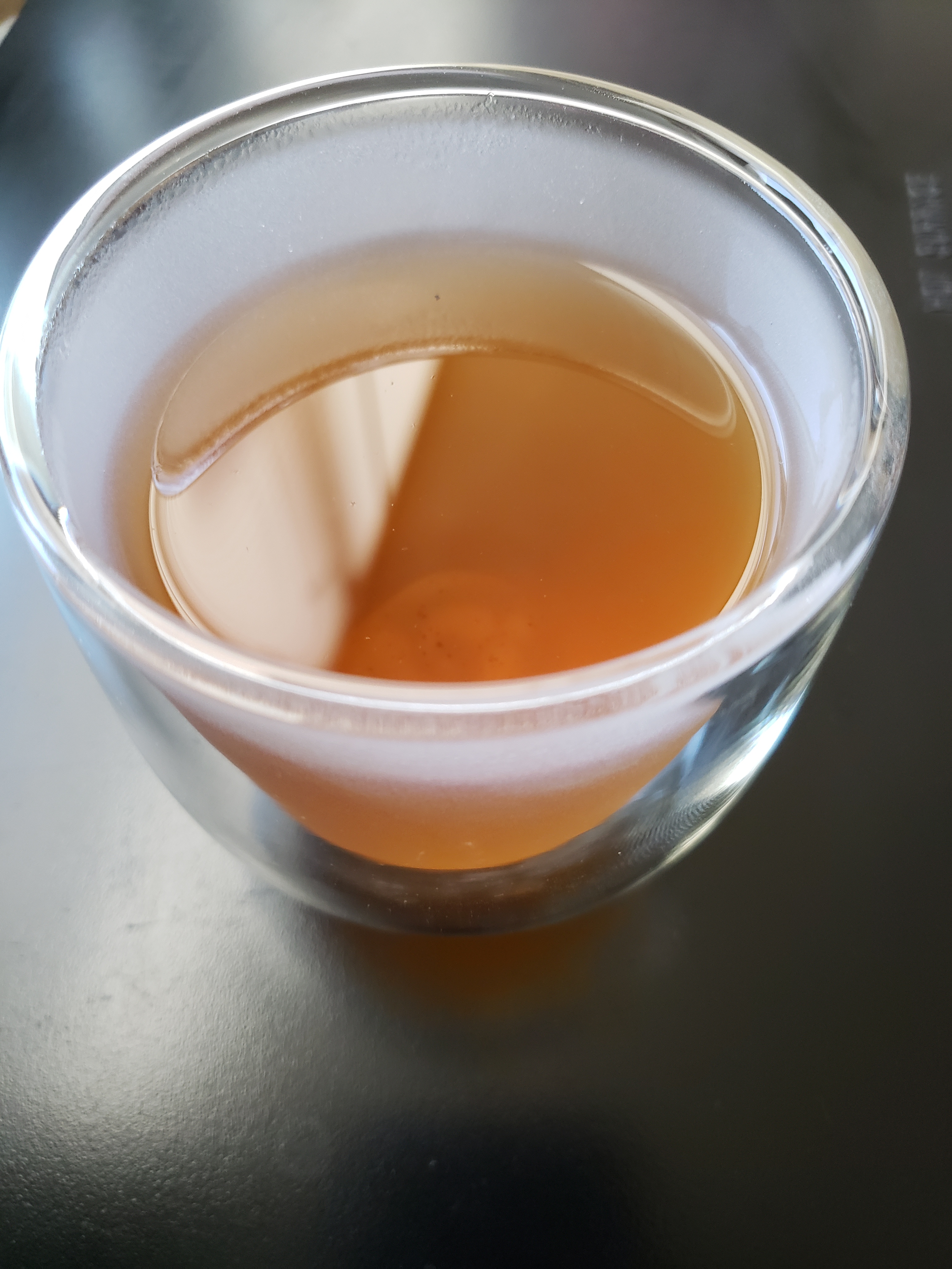 Tea liquor: After infusing, the scent coming off of the liquor was lightly sweet and spicy with hints of cinnamon. The scent was much lighter than it was in the dry tea. The color of the liquor was a light golden-orange, honey-like, color.