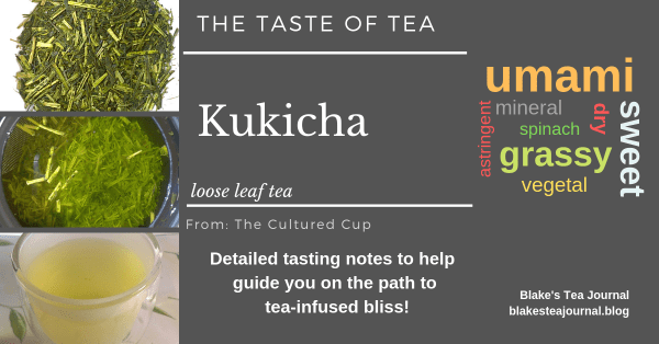 Hey there, tea drinkers! I hope you had a great weekend. Today’s post is another Taste of Tea entry in which I’ll relay my tea-tasting journal entry for the Kukicha loose leaf tea from The Cultured Cup.